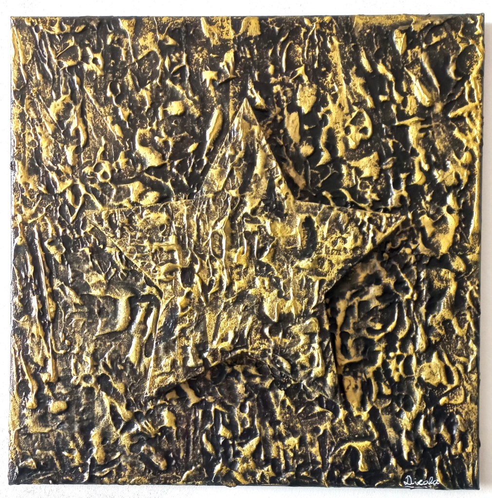 Toile fusionniste, avec en son centre un mini-châssis en forme d’étoile. Cette étoile apporte un effet 3D à l’ensemble.