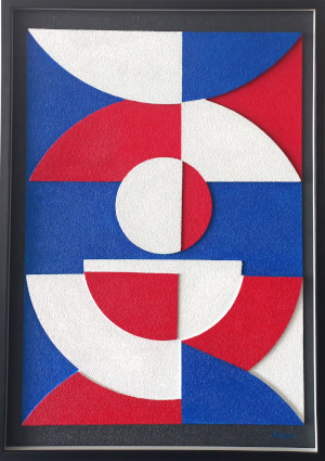 Abstrait et géométrique, tableau en quatre couleurs et en 2D, aux couleurs de la France chère à mon cœur.